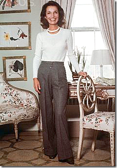 Here, after Anthony and Caroles wedding she relaxes in her Hampton house - with its Le Manach toile fabric.
