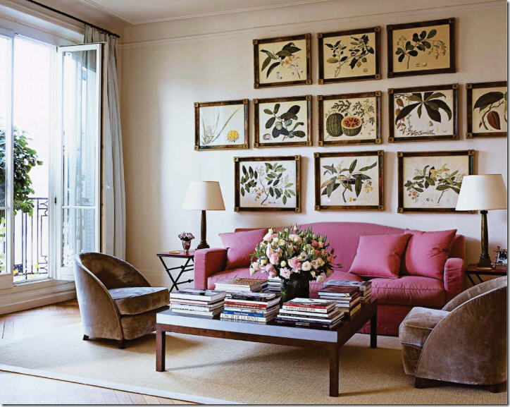 And finally, the botanicals landed here, in her current Paris apartment. I wonder where the smaller ones are? Perhaps in another room? I would have hung the middle section of the prints lower closer to the sofa. They seem a little high which is a very uncharacteristic misstep for Radziwill. Not sure she has really ever made a misstep in decorating before that I can think of! She is a wonderful decorator! I love her style and just cant get enough of it.