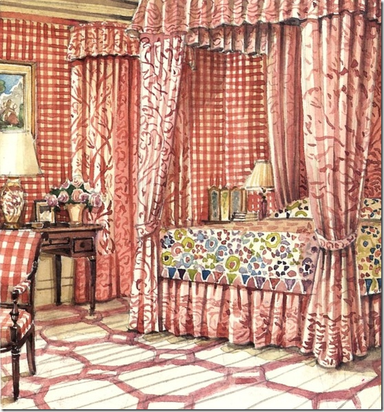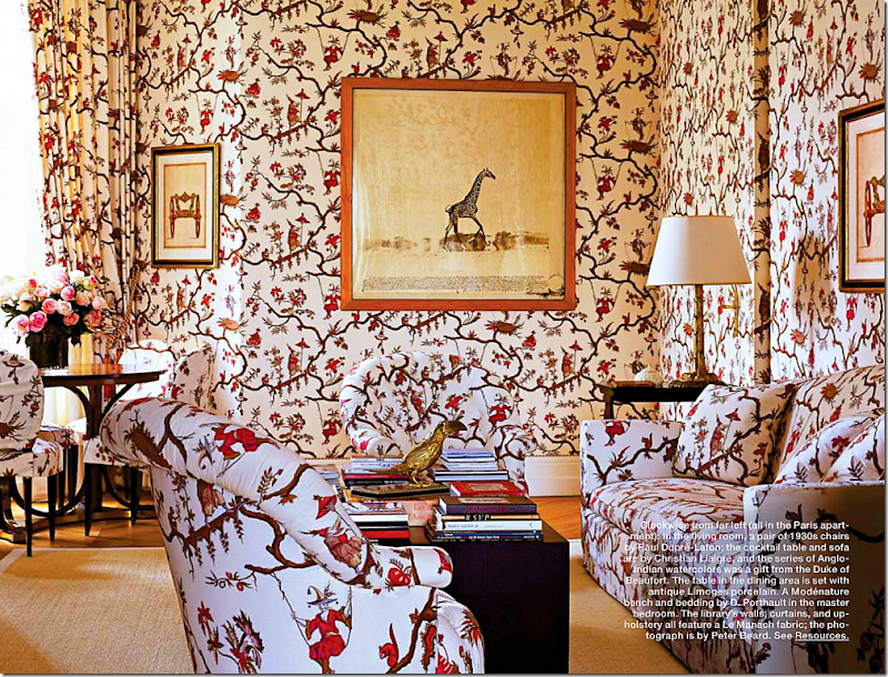 Her FIRST Paris apartment with the same fabric wall to wall. I love the fabric like this, all over everything. I wonder why she didnt do it like this in her new Paris apartment?